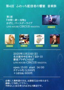 Event Schedule11月 20252211月土曜日 鴉ワンマンライブ「奇跡の平日乗り越えて」 開場/開演時間: 18:00 - 18:30 チケット料金: 3,500円(税込)出演者: 鴉 詳細 2311月日曜日 第四回 ふわっち配信者の響宴 音楽祭 開場/開演時間: 13:00 - 14:00 チケット料金: 3,500円(税込)出演者: かずと、/他 詳細 2911月土曜日 『マジカル1ダフルツアー ~甲虫楽団 名古屋公演』 開場/開演時間: 17:00 - 17:30 チケット料金: 2,000円(税込)出演者: 甲虫楽団 詳細 3011月日曜日 Sae. ONEMANLIVE からふる 開場/開演時間: 11:30 - 12:00 チケット料金: 3,000円(税込)出演者: Sae. 詳細 3011月日曜日 MINAMI HIROKI ONEMANLIVE2025 〜thousands star〜 開場/開演時間: 18:00 - 18:30 チケット料金: 3,000円(税込)出演者: 南宏貴 詳細 12月 20250612月土曜日 MID-FM公開収録LIVE “サス×なび” vol.8 開場/開演時間: 17:00 - 17:30 チケット料金: 4,400円(税込)出演者: AYANE/我生/mekakushe 詳細 0712月日曜日 coming soon… 開場/開演時間: All Day 詳細 1012月水曜日 Heart❤︎Box半周年記念!東名阪単独ツアー 開場/開演時間: 16:00 - 16:30 チケット料金: 3,500円(税込)出演者: Heart♡Box 詳細 1312月土曜日 coming soon… 開場/開演時間: 08:00 - 18:00 詳細 1412月日曜日 蒲公英歌 vol23 開場/開演時間: 16:30 - 17:00 チケット料金: 3,500円(税込)出演者: Get Bill Monkeys / アマイオクスリ / みみみ食堂 詳細 2012月土曜日 coming soon… 開場/開演時間: All Day 詳細 2112月日曜日 coming soon… 開場/開演時間: All Day 詳細 No event found!Load MoreTopへ戻る