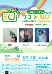 0612月土曜日 MID-FM公開収録LIVE “サス×なび” vol.8 開場/開演時間: 17:00 - 17:30 チケット料金: 4,400円(税込)出演者: AYANE/我生/mekakushe 詳細