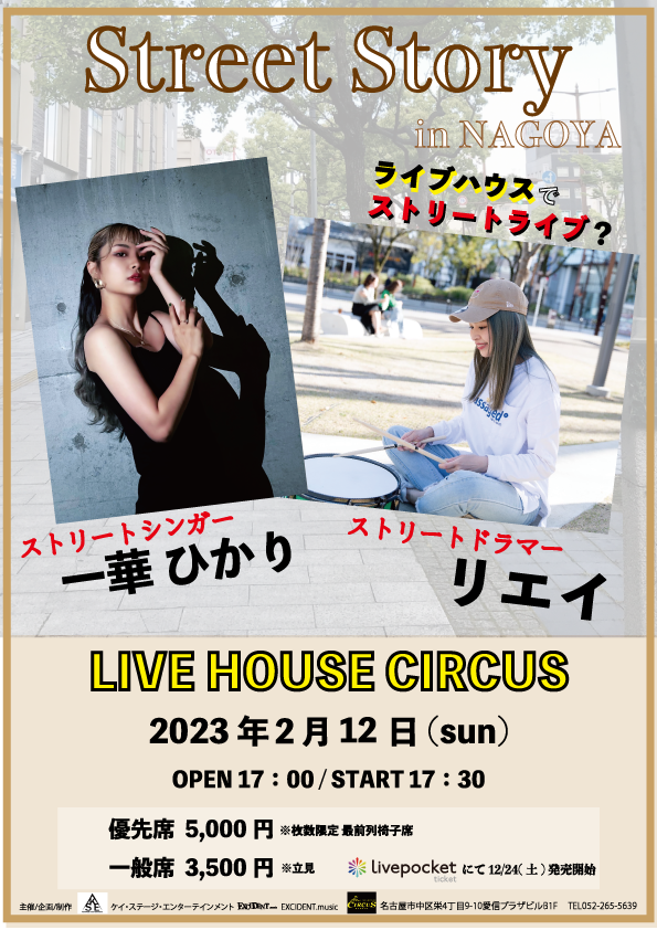 一般発売:1/7(土) 10:00〜優先席 5,000円※枚数限定 最前列椅子席